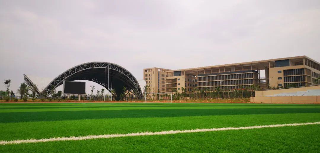 走出教学楼,你会看到类似于“鸟巢”的建筑,这实际上是学院的风雨球场,南田径场紧邻风雨球场,在这可以自由的奔跑,尽情的挥洒汗水。