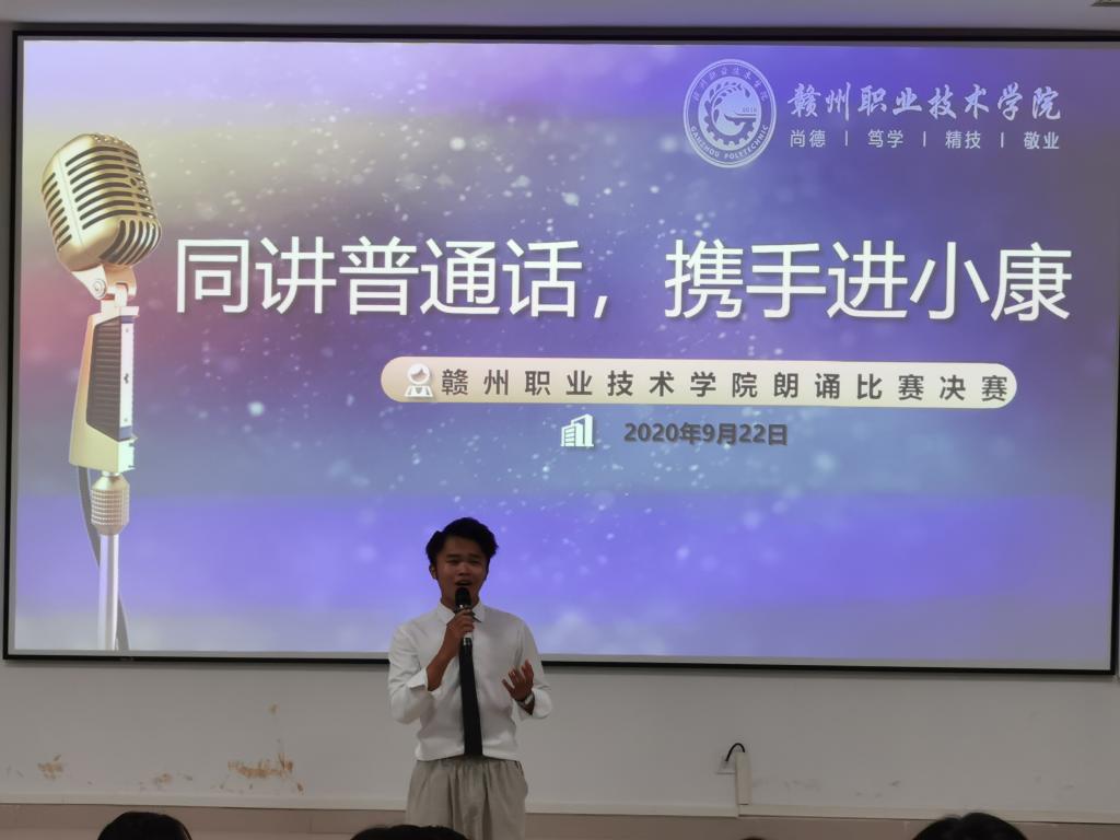 为大力推广和规范使用国家通用语言文字,充分发挥语言文字的基础性作用,助力决战脱贫攻坚。围绕第23届全国推广普通话宣传周“同讲普通话,携手进小康”主题,学院于9月22日在阳明楼阶梯教室开展了“同讲普通话,携手进小康”朗诵比赛决赛。比赛由马克思主义学院、团委主办,语文教研室承办。
