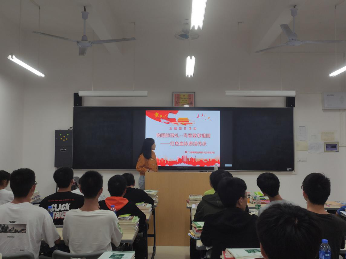 为庆祝新中国成立71周年,引导和激励学院青少年大力弘扬爱国主义精神、传承红色基因、树立制度自信、展现青春风貌,院团委于2020年9月29日以“红色血脉赓续传承——讲红色故事”的形式开展了“向国旗敬礼——青春致敬祖国”主题团日活动。