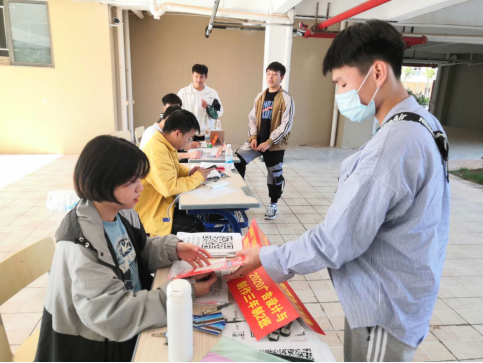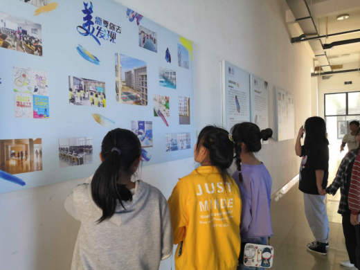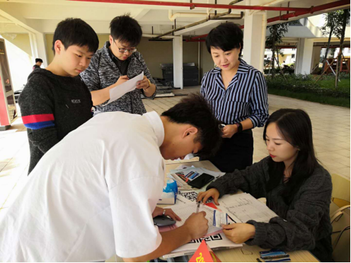 在艺术设计系的教学楼里,有教师们专门为本次迎新工作谋划部署、设计制作的整套有关于学校风光、校园生活以及专业介绍的展示板,既保证了功能性,又突出了专业特色。
