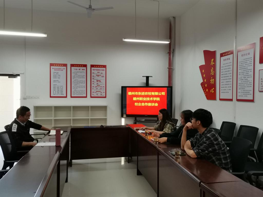 为了更好地推进校企合作,充分发挥学院和企业优势,共同培养经济社会发展需要的技术技能型人才,11月13日下午,学院与惠州东进农牧股份有限公司校企合作座谈会在应星楼会议室召开。惠州东进农牧股份有限公司行政经理龚筱谊、赣州市东进农牧有限公司人力资源主管朱荣浩、刘薇薇,动物科学系负责人吴辉生和教师聂青青出席座谈会。