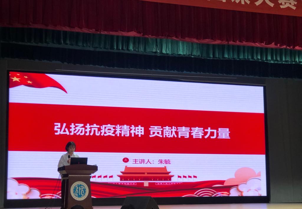 朱毓老师以《弘扬抗疫精神,贡献青春力量》为题,围绕抗疫期间我院学子、青年教师的志愿服务事迹,在奉献中谱写青春的乐章。