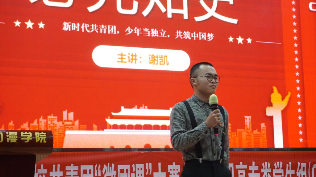 谢凯同学以《欲知大道必先知史》为题,由美国大选及新冠疫情民众反应,对比我国高效率的“抗疫”攻坚战,引出“从历史我们便可知晓我国人民为何可以同仇敌忾,上下一心”;紧接着以“为什么”、“学什么”、“如何学”三个问题引出学习新中国史的重要新、必要性、紧迫性,深入浅出的与大家分享学习方法,交流学习心得。