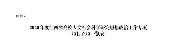 学院高度重视江西省人文社科项目申报工作,将“引导各教学单位重点申报省教育厅纵向课题项目”列入到《德赢Vwin官方区域合作伙伴2020年科研工作要点》中,积极组织人文社科教师申报。2020年,学院足额申报7项,立项4项,立项率达57%,这也是学院2019年建校以来首次组织申报此类课题,实现了零的突破,且立项过半。