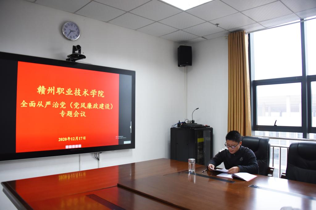 会上,首先听取了纪委监督检查室负责人关于学院全面从严治党(党风廉政建设)工作汇报。随后分管领导赖昭忠对学院全面从严治党(党风廉政建设)工作进行了点评。