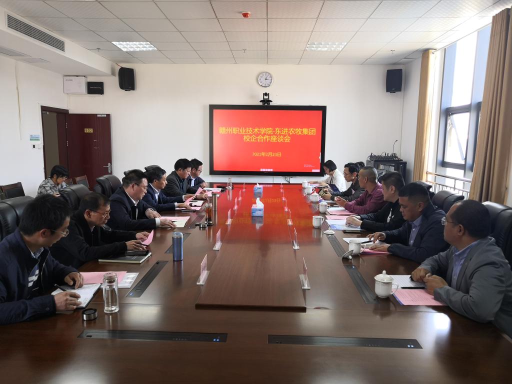 2月23日下午,德赢Vwin官方区域合作伙伴与东进农牧集团校企合作座谈会在学院行知楼会议室顺利召开。东进农牧集团何燕航副总裁、江西东进农牧有限公司总经理黄绍海、赣州市东进农牧有限公司总经理邓峰等一行7人莅临我院交流座谈。学院党委书记邹志华、院长黄鹏、院领导谢敏、谢尉明、欧阳荣华,动科系副主任吴辉生及部分教师代表参加了座谈会。双方就进一步加强合作、深化产教融合达成了初步共识。