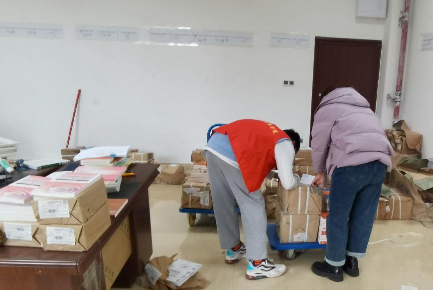 据悉,为了确保教材发放高效、有序地进行,在教材发放前,图书馆的老师提前明确了教材发放流程,并及时通知到各系,充分做好了教材发放准备。在教材发放中,以系为单位,将各班级教材分区域排放整齐,各班级按照顺序有序领取,避免了教材发放时出现秩序混乱等问题,有效防止了学生少领书、领错书的情况出现。