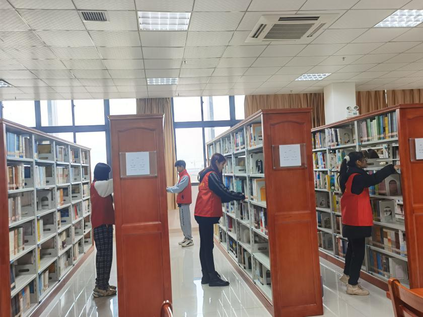 志愿者们首先由图书馆老师组织开展志愿服务培训。在培训中老师们向志愿者介绍了图书馆的概况及馆内的文化活动,对本次志愿活动的任务做了细致的安排与讲解。随后,学生志愿者们在图书馆老师带领下参观了图书馆,熟悉了图书馆空间分布和工作环境。随后井然有序地开始各自的工作。