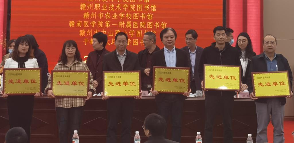 会上,赣州市图书馆学会还表彰了“2020年全民阅读先进单位”,即在全民阅读工作中积极宣传和践行社会主义核心价值观,弘扬中华优秀传统文化,组织策划了理念新颖、内容丰富、品牌效应较好的阅读推广活动,对全市各级各类图书馆开展全民阅读活动起到了较好的示范作用的单位和个人。 我院图书馆荣获该奖,被评为赣州市“2020年全民阅读先进单位”。(撰稿:廖楠;初审:姚炬平;文字编辑:杨盛钦;责任编辑:刘丹;复审:曾卫平)