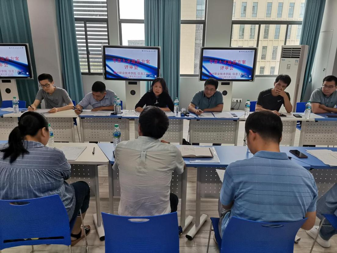 为落实全国教育大会精神、贯彻教育部《国家职业教育改革实施方案》《教育部关于职业院校专业人才培养方案制订与实施工作的指导意见》(教职成〔2019〕13号)和《教育部 江西省人民政府关于整省推进职业教育综合改革提质创优的意见》(赣府发〔2020〕16号)等文件要求,对接国家专业教学标准,不断创新育人体制机制,提高人才培养质量,6月12日下午,信息工程系全体教师在天佑楼313智慧教室召开了2021级专业人才培养方案评审会,会议由系主任张俊华主持。
