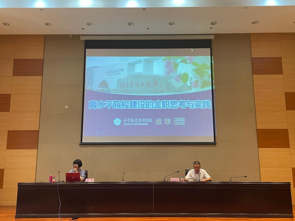 7月12日下午,金华职业技术学院副校长成军教授应邀作“双高”建设专题报告。研修班全体成员参加了活动,院领导欧阳荣华主持活动。