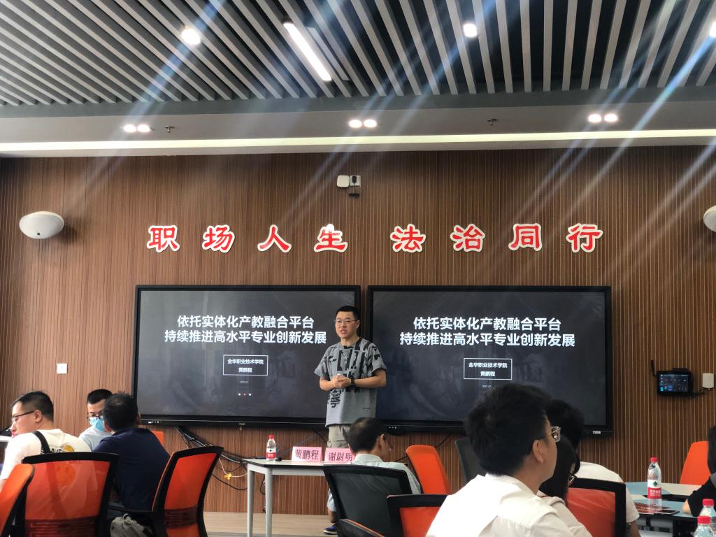教育教学组聆听了金华职业技术学院机电工程学院黄鹏程博士的精彩讲座,黄博士以《依托实体化产教融合平台持续推进高水平专业创新发展》为题,从金职院机械制造与自动化专业群从专业群优势与特色、产业发展与组群逻辑、建设目标与思路、建设内容与改革举措4个方面介绍学院专业群办学理念与创新发展,让在座的老师们受益匪浅。