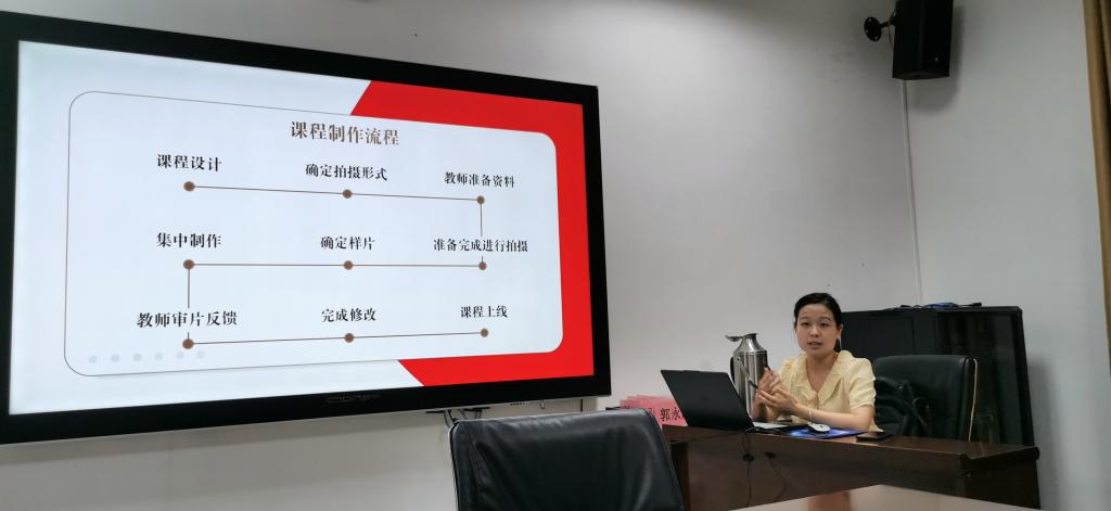 培训会上,培训专家从团队组建、课程设计、脚本编写课程拍摄、后期制作、上线运行等方面,对课程建设流程展开培训。参训人员根据专业特点,提出许多问题,与制作团队进行沟通交流。