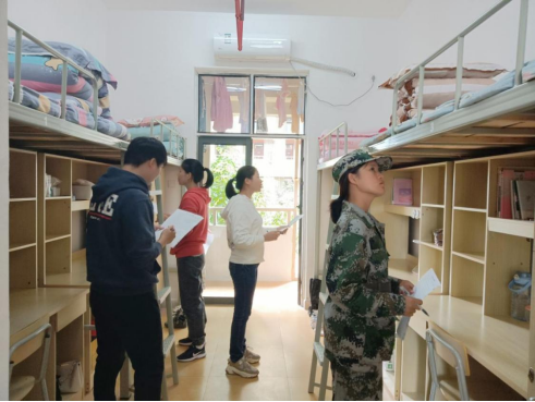 整理内务环节以寝室为单位,以整理速度和整洁程度为基准,由各班辅导员对学生宿舍整洁情况进行打分。随着“开始”的一声令下,各位同学快速地收拾寝室卫生,让我们看到了同学们对整理内务的娴熟。