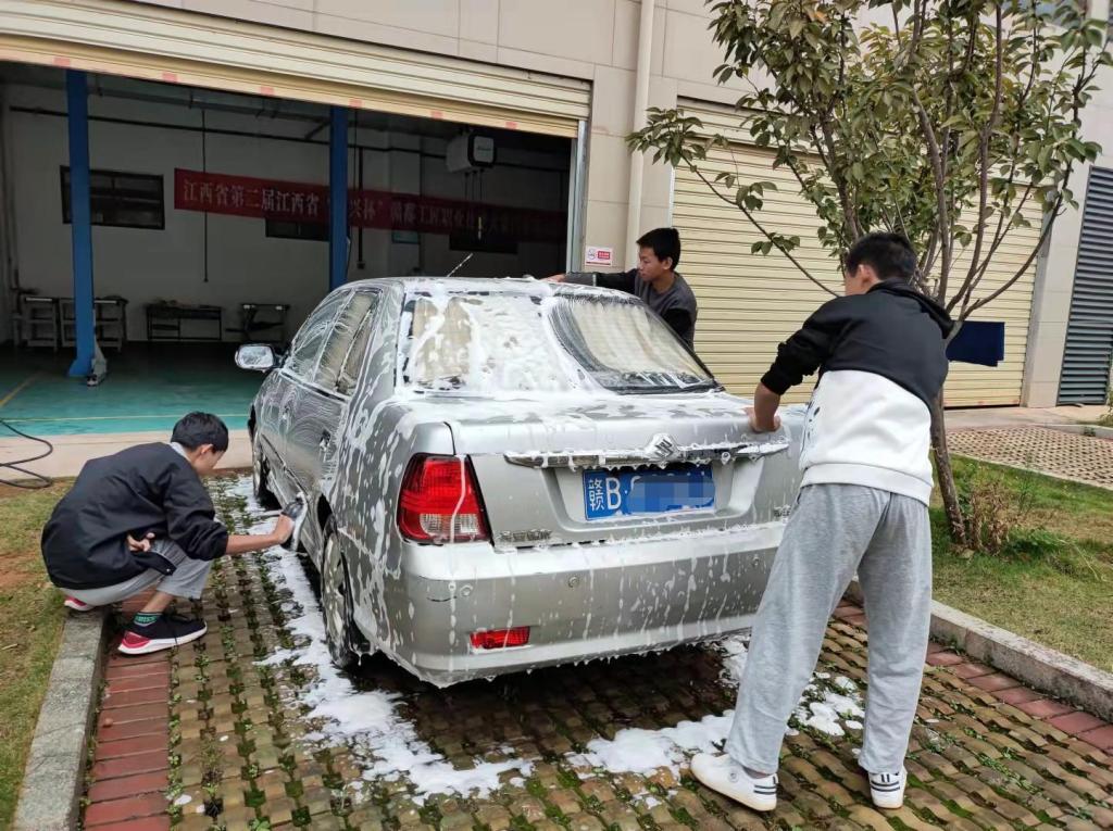 走近校园的以升楼,每到课余时间,就有这样一群学生,通过专业、熟练的操作技能,热心地为前来洗车及做保养的车主提供服务,给车主留下了良好的印象,收获了不少好评。