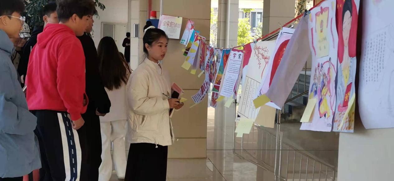 各班学生围绕着“国家宪法日”,根据自己的特长,绘制图画、撰写文稿,以此来展示他们对宪法的理解与感悟。此次活动,共收到了16幅作品,系团总支学生会在陆羽楼一楼展示了所有作品,并号召路过的学生对此进行匿名投票。最后评出了一等奖1名,二等奖2名,三等奖3名。