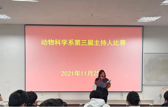 为了活跃校园文化氛围,彰显系部学生风采,展现学生青春活力,11月25日晚,动物科学系第三届主持人比赛在A2-111教室举行。本次比赛由动物科学系学生会学习部主办,系学生会会长郭龙海及学生会各部门负责人担任此次比赛评委。