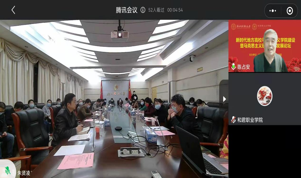 会上,原北京大学马克思主义学院院长陈占安教授在线上作了《关于深化新时代高校思政理论课改革创新的思考》的精彩报告。赣南片区11所高校思政课教师代表围绕思想政治理论课问题式专题化教学设计、教学感悟、教学经验等内容进行了教学交流。