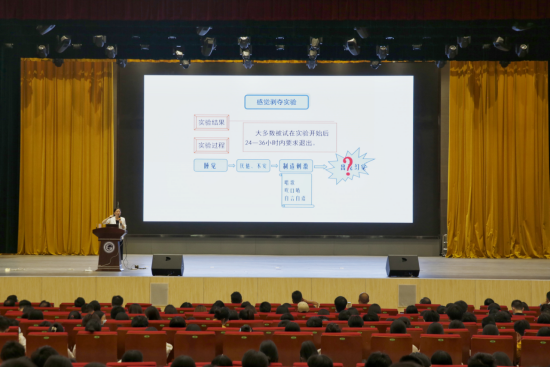 温义媛以轻松活泼的拍手节奏操开场,有效调动了师生的积极性。她从“精神消耗陷阱”展开,用“感觉剥夺实验”“信息过载实验”形象地解释了我们为什么会陷入“精神消耗陷阱”及其危害,并告诉我们正确的面对方法。同时,深入浅出地从“扩大视觉、认知重塑”“好好学习、天天向上”“快乐数招、守护健康”等心理调节方法展开讲述,引起了与会师生的共鸣。