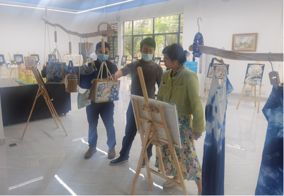 艺术设计学院负责人余万霞对展厅布局、展出作品、学院发展、实训室建设、如何将非遗融入教学等进行了详细的介绍,并就非物质文化遗产传承发展融入街区建设与历史街区负责人进行了探讨交流。