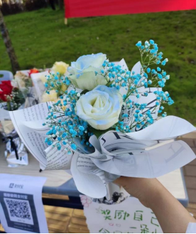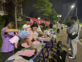 太阳慢慢落山,夜幕降临,路灯接二连三地亮起,现代农林工程系拾花小舍在陆羽楼楼下售卖着浪漫的花束。充满青春活力的小摊吸引着人们的驻足,该小组成员都在尽力招揽顾客,有的站在摊前吆喝,有的介绍着不同的花束,有的对鲜花进行搭配、包装出浪漫的鲜花。一切都在井然有序地进行,此起彼伏的叫卖声交杂着欢声笑语,原来是现代农林工程系2019园艺技术五年制的同学正在开展创新创业实践活动。