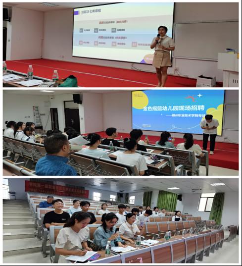 招聘方负责人分别就单位做了详细介绍,对单位的规章制度、办学理念、招聘条件、园所环境、实习待遇、未来发展等做了明确说明。