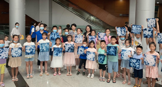 活动中,艺术设计系教师对科普体验学生讲解蓝染的颜料制作过程、扎染的制作流程及不同制作技法,共40组家庭参与体验了蓝染技艺,同学们很好地完成了作品并进行了展示。