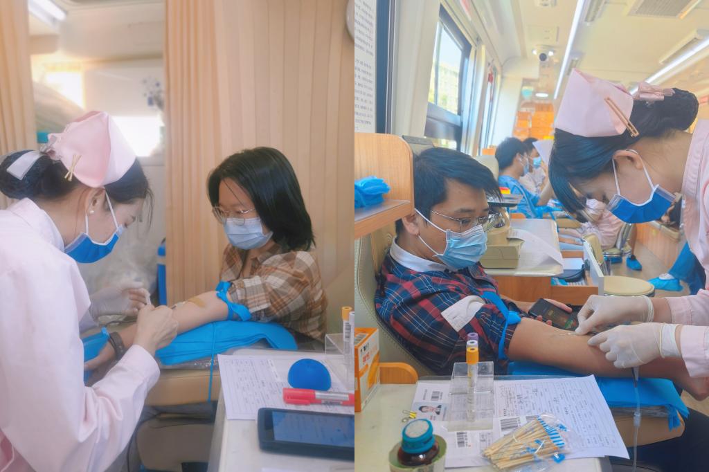 前来参加无偿献血的师生按照疫情防控要求,自觉戴上口罩,有序测量血压、采集血样、化验并填写登记表,医务工作者及志愿者们耐心地为献血者进行登记并引导他们完成体检,现场秩序井然。