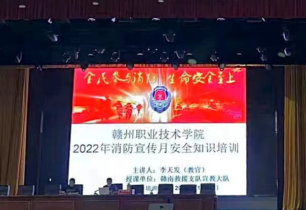 为积极开展全国第23个“119”消防宣传月活动,进一步提高学院师生消防安全意识,普及消防安全知识,提高校园抵御火灾事故的能力,11月21日下午,我院保卫处邀请了赣南救援队宣教大队的李天发教官在学院行知楼一楼报告厅开展了以“抓消防安全,保高质量发展”为主题的消防安全知识培训。在校师生、安保、后勤等重点人员共同参加了培训。