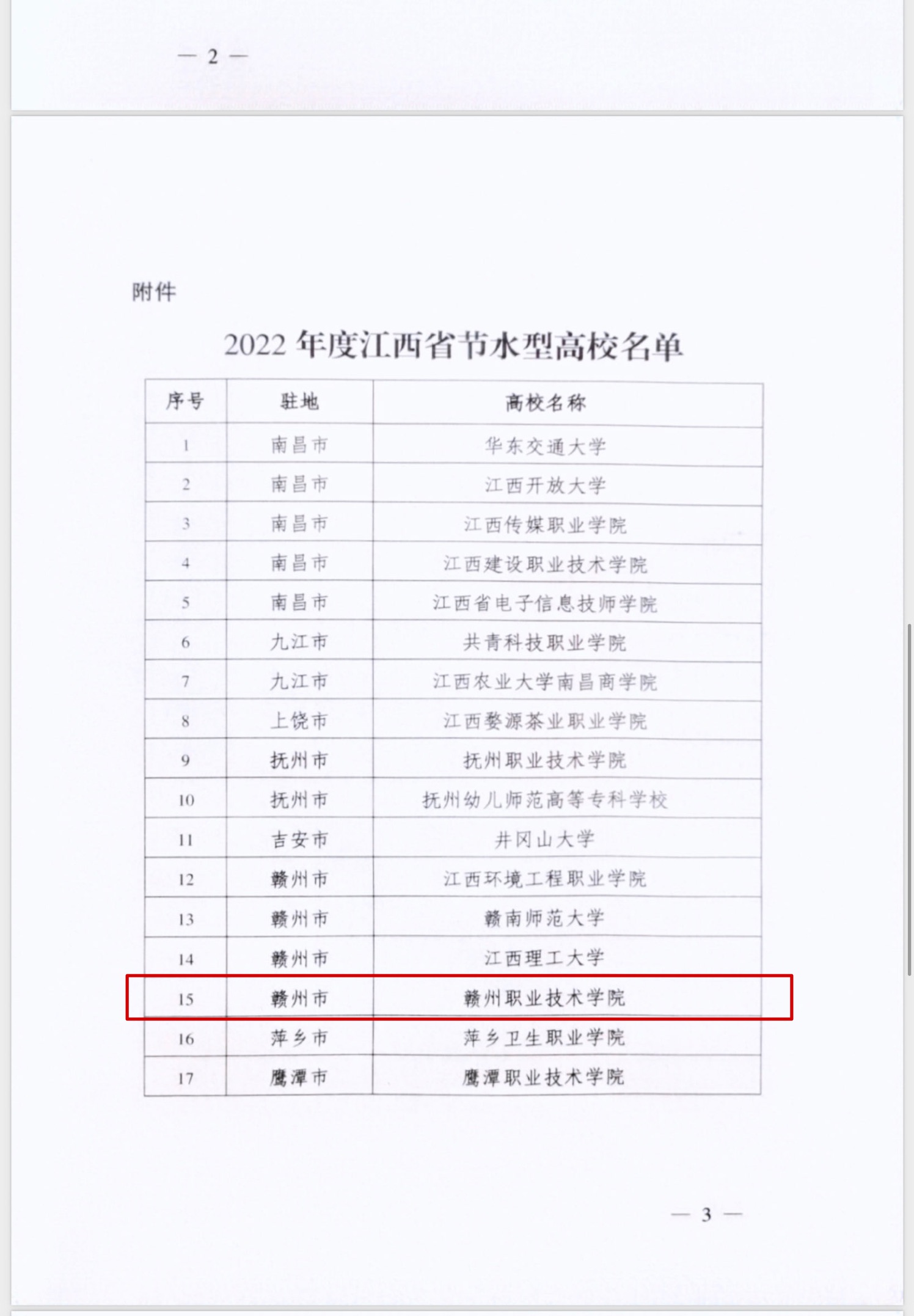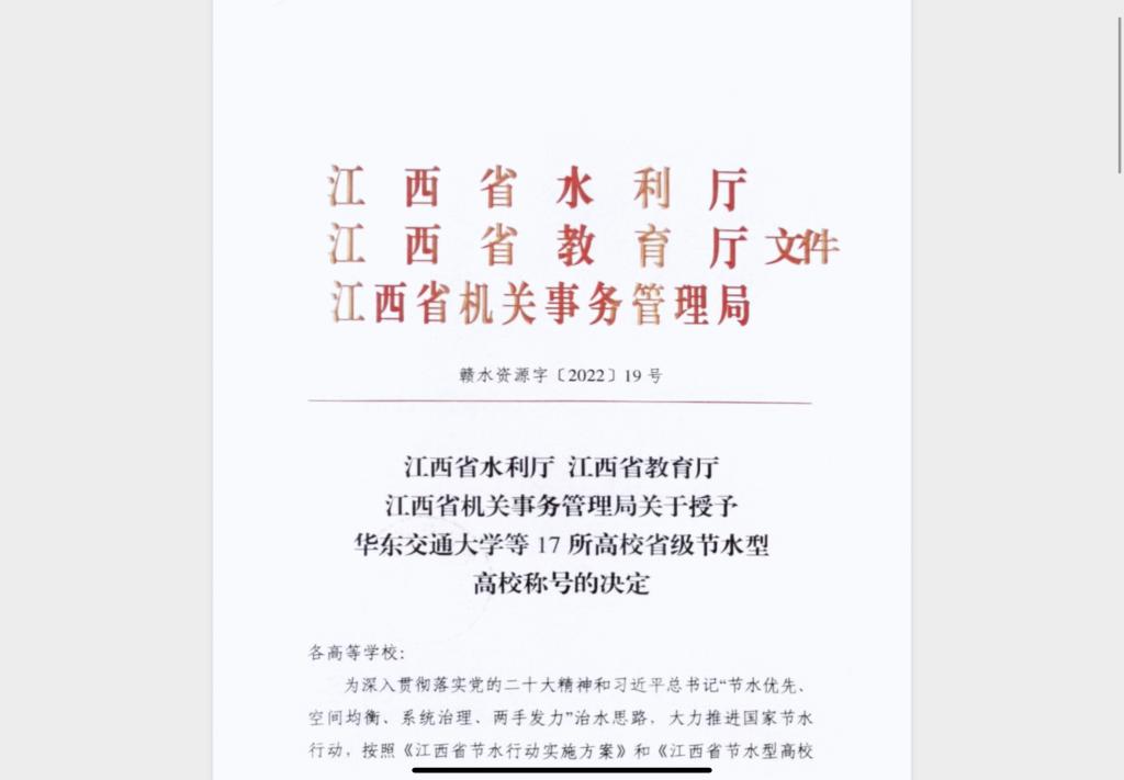 近日,江西省水利厅、江西省教育厅、江西省机关事务管理局联合公布了2022年度江西省节水型高校名单,我院荣获2022年度江西省“节水型高校”荣誉称号。