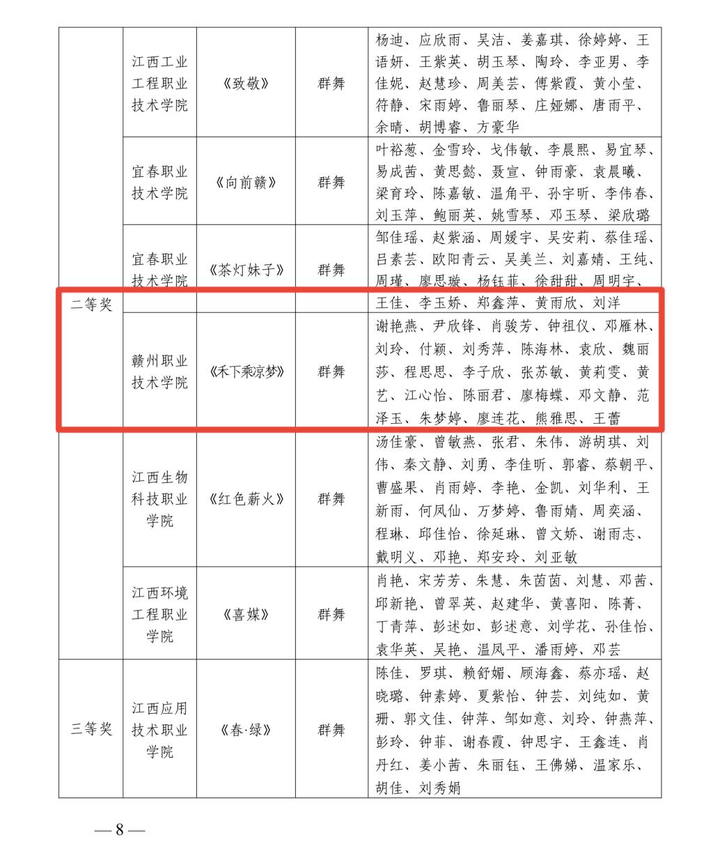 近日,由江西省教育厅、省文联主办的“江西省第七届大学生舞蹈节”比赛获奖名单揭晓,由现代服务系教师陈丽嫔、刘书瑶、钟奕指导群舞作品《禾下乘凉梦》代表我院首次参赛,经过激烈角逐,最终荣获专科院校甲组二等奖和优秀编导奖。