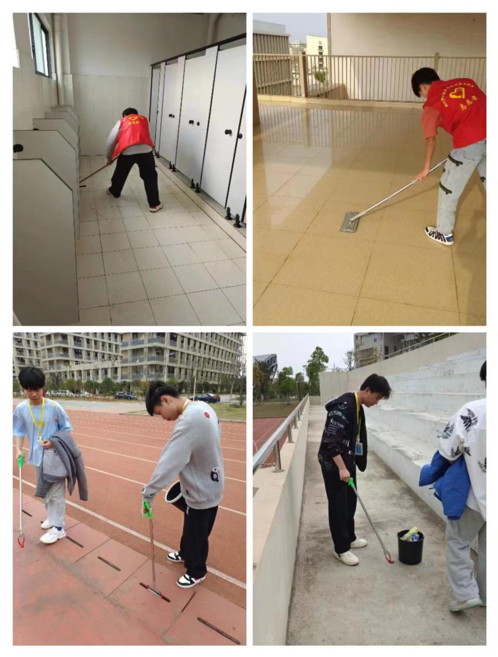 为维护校园环境、保障学生拥有一个舒适、优雅、干净的学习、生活环境,系学生会组织开展打扫教学楼、宿舍楼、运动场、洗手间等公共区域活动。志愿者们满怀热情,分工明确,通力协作,不怕脏和累,拿着扫帚、撮箕等清洁工具,对校园各个区域进行卫生清扫。大家干得热火朝天,忙碌的身影成了一道亮丽的风景线。