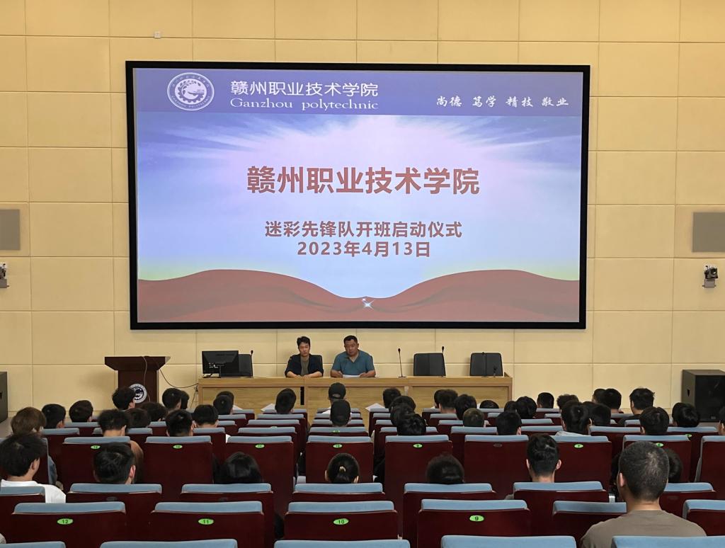 为了响应国家征兵号召,激发在校学生的参军报国热情,4月13日下午,在章贡区武装部关心支持下,学院在图书馆一楼报告厅举行迷彩先锋队的开班启动仪式。学院武装部副部长吴磊、武装部工作人员钟益福以及迷彩先锋队成员参与此次活动。