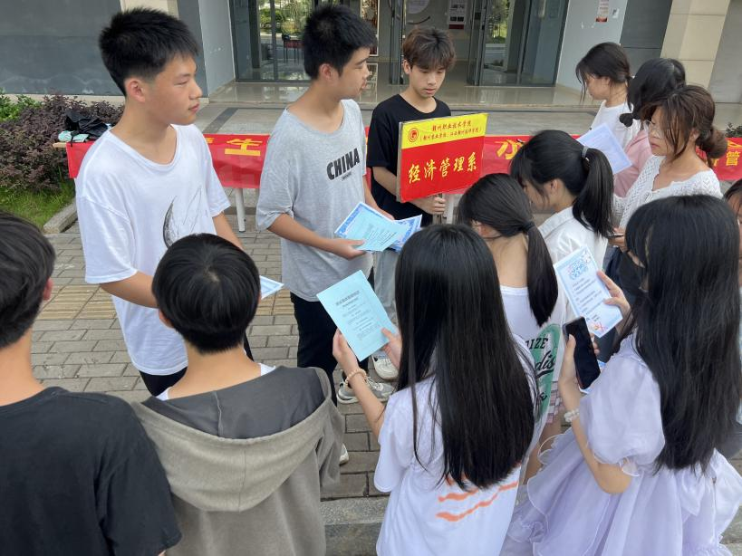 活动中,经管系学生志愿者向师生发放“防溺水安全知识”手册,并对夏季防溺水“六不准”、游泳溺水急救知识等内容进行宣传。