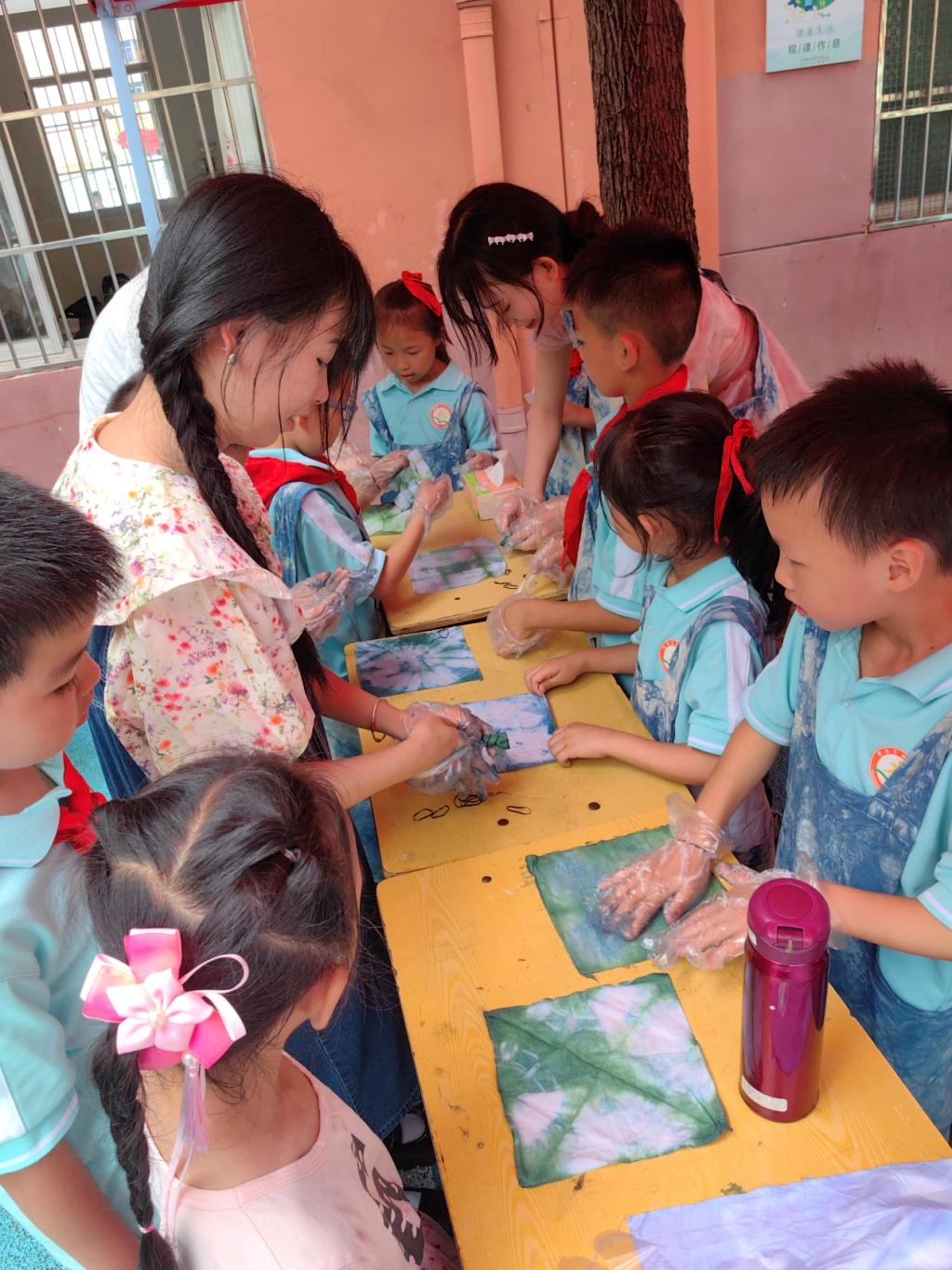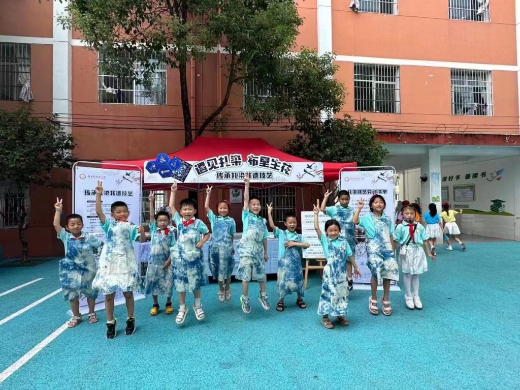 “非遗”传承是一代拉着一代,手牵着手共同完成的事业。为了让扎染非遗技艺在下一代孩子心里种下一颗兴趣的种子,让科普知识走进校园。6月1日,在儿童节这个特殊的日子里,艺术设计系教师、青年学生志愿者走进了赣县区城关小学,开展“遇见扎染,布里生花”传承扎染非遗技艺活动。
