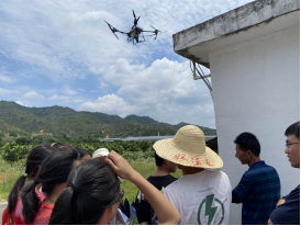 随后,邓书记带领同学们登上观光台,眺望整个脐橙园,让他们目睹党建带动产业发展的辉煌成就。下午,同学们在技术员的指导下,体验了无人机喷洒技术。