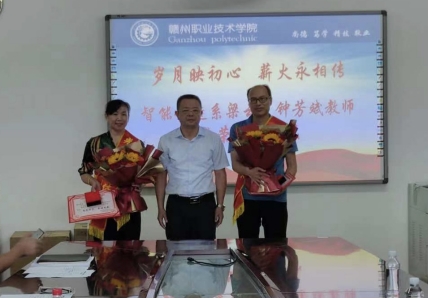欧阳荣华高度肯定了梁云和钟芳斌为学院和智能制造系作出的杰出贡献,并真诚地祝愿二位教师心情舒畅,健康长寿,合家欢乐,常回学校看看,并向两位教师佩戴绶带、敬献鲜花、颁发纪念章和纪念品。