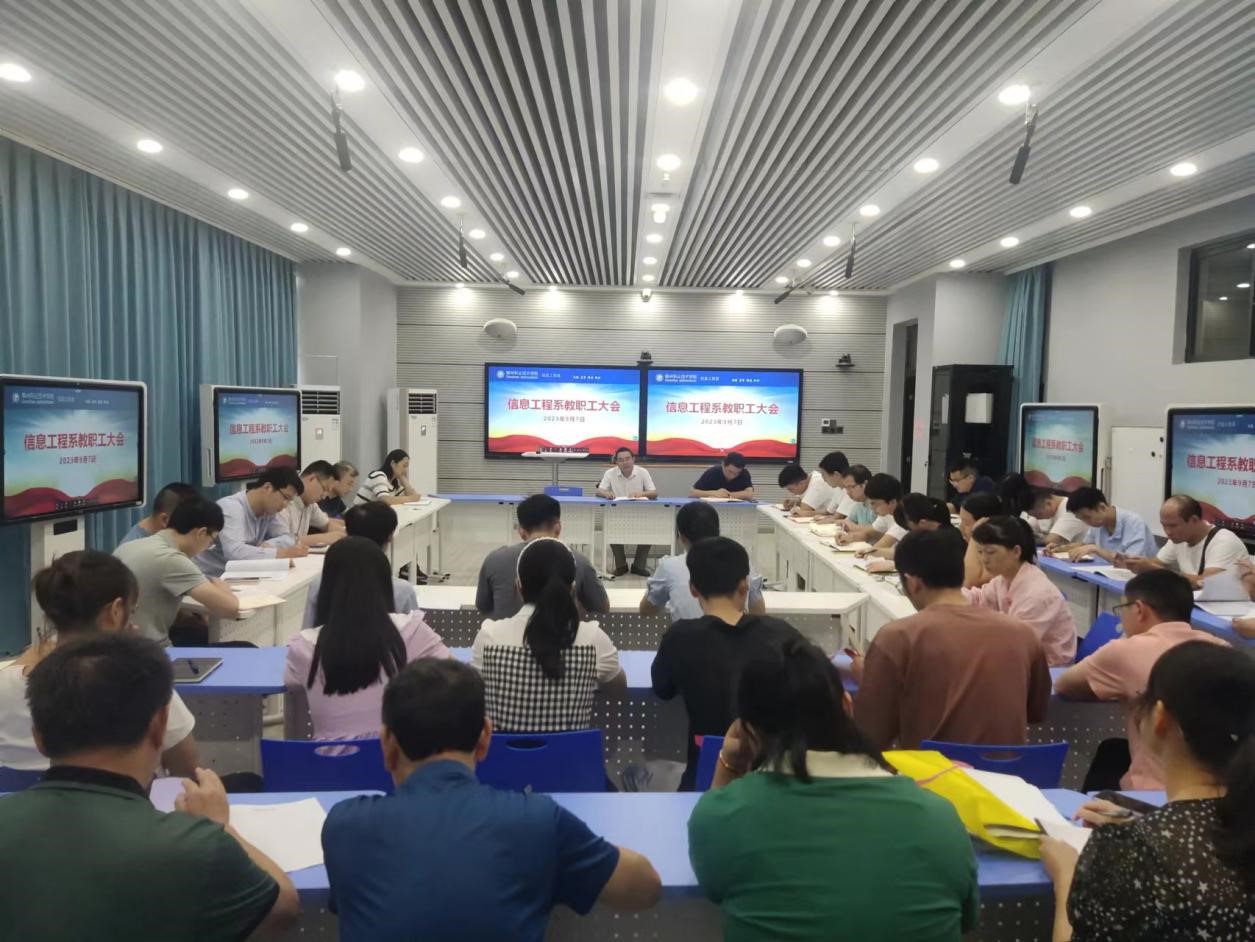 为迎接新学期到来,确保新学期开学的各项工作扎实、有序开展。9月7日上午,信息工程系在天佑楼313室召开新学期工作部署会。会议由信息工程系主任张俊华主持,系部全体教职工参加会议。