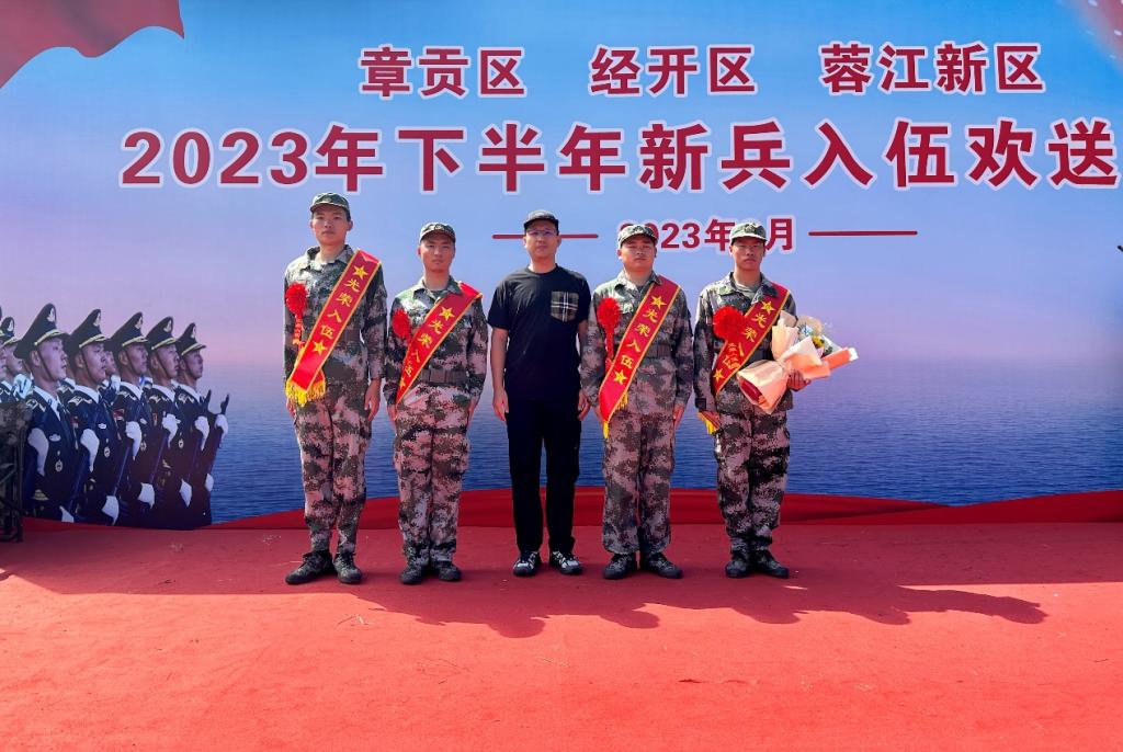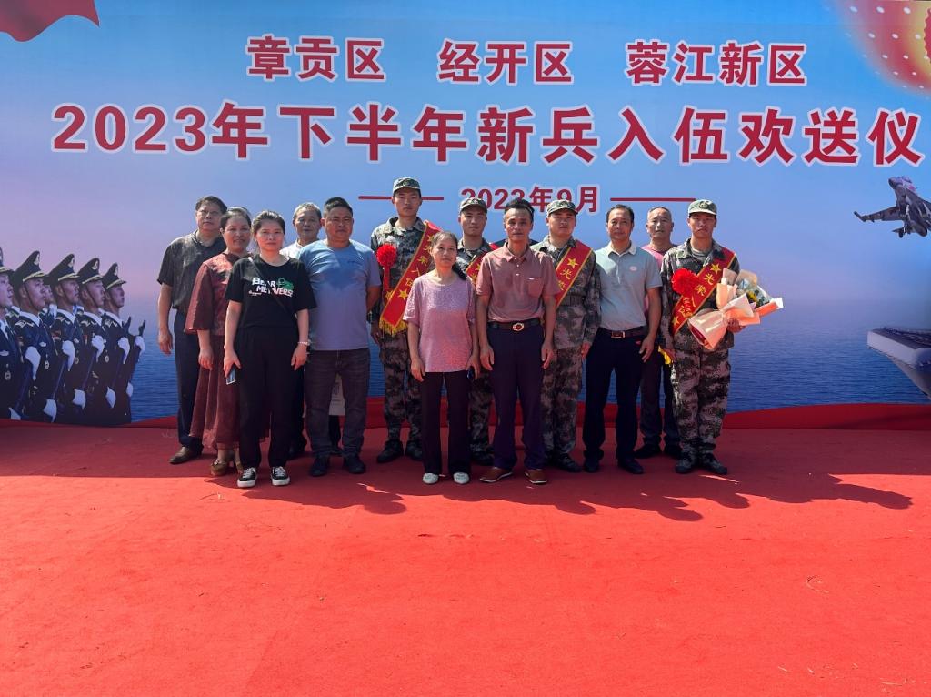 9月17日上午,章贡区、经开区、蓉江新区举行2023年下半年新兵入伍欢送仪式,学院保卫处(人武部)干部、新兵家属参加欢送仪式。