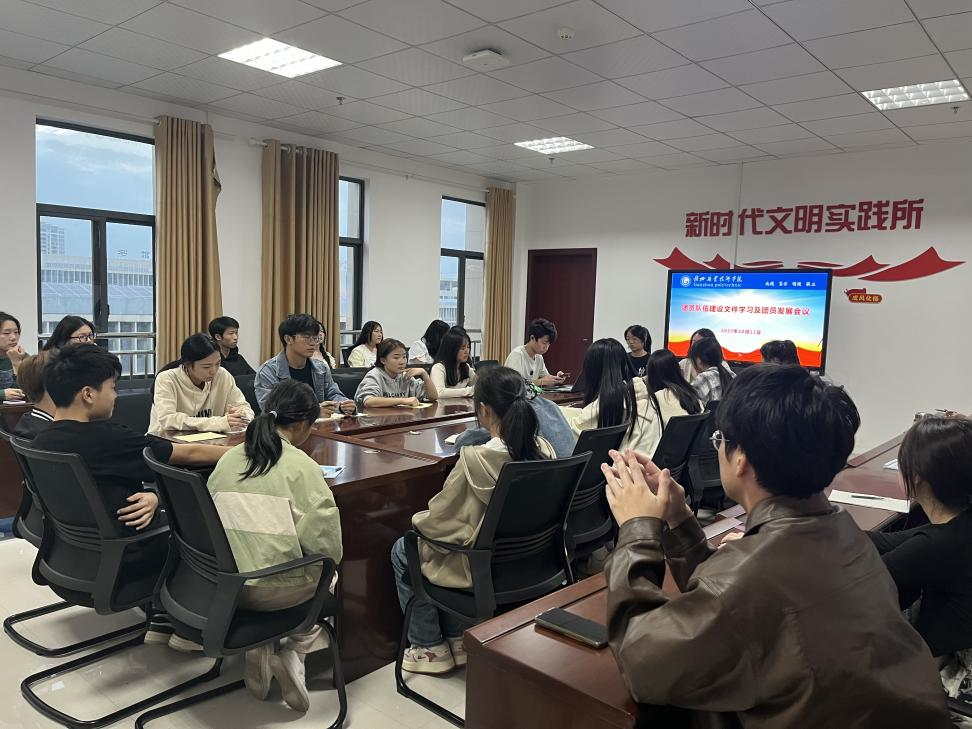 为全面学习贯彻习近平新时代中国特色社会主义思想和党的二十大精神,深入学习习近平总书记关于青年工作的重要思想,落实团中央关于加强团员队伍建设的重要指示,经济管理系团总支于10月12日下午在阳明楼510会议室围绕团员发展及团员队伍建设等相关文件开展学习,夯实团的基层组织建设工作。出席本次会议的有经济管理系团总支指导教师肖蔚老师、团总支学生工作人员及各班团支书。会议内容包含团员发展文件学习、团员队伍建设文件学习及学院“微团课”比赛的动员部署。
