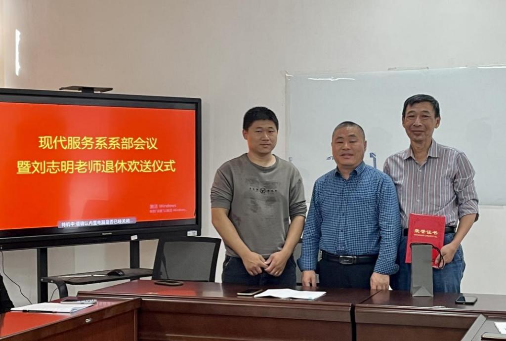 退休欢送仪式上,现代服务系主任曾海鹏为刘志明老师颁发退休荣誉证书和纪念品。曾海鹏对刘志明老师多年来敬业爱岗、恪尽职守、无私奉献表示了充分肯定,表达了对他几十年来为教育事业辛勤奋斗、无私奉献的敬意与感谢,祝愿刘志明老师在职业生涯画上圆满句号的同时,开启人生下一个崭新篇章,常回家看看。同时,鼓励在职教职工传承退休教师的优良作风,砥砺奋斗。峥嵘岁月献青春,薪火相传赣职情。退休欢送仪式不只是一场仪式,更是一种激励和传承,进一步鼓舞着全体教职工坚定树牢绝对忠诚的政治品格、心无旁骛的事业品格、怀德自重的清廉品格,为学院教育高质量发展贡献力量。
