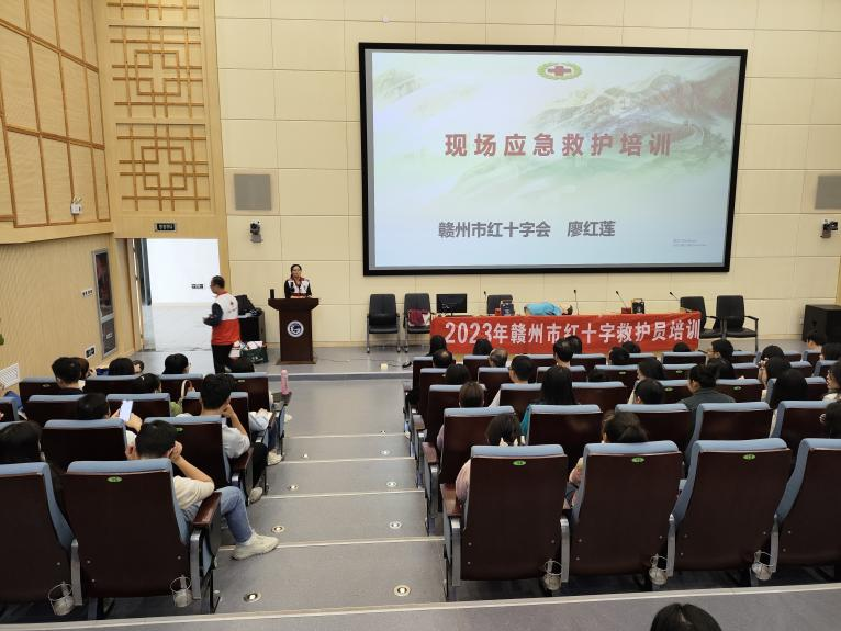在学院图书馆报告厅内,赣州市红十字会资深救护员培训讲师廖红莲老师为大家进行了系统的救护员技能知识的理论培训。本次理论培训内容丰富,包含现场应急救护、气道异物梗阻、心肺复苏操作技术以及自动除颤仪AED的使用知识等。