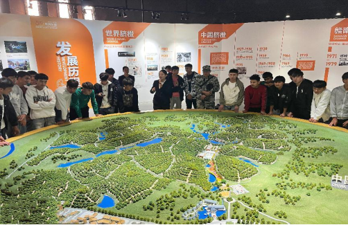 最后,大家来到脐橙博览馆,这是全国首家以“脐橙”为主题的大型展馆。3D动态脐橙树、实景沙盘、脐橙产业发展成就展、脐橙深加工产品展示区等板块,融合了文化传播、研学科普、创新科技、科学研发等功能,让师生沉浸式体验着浓厚的脐橙文化。