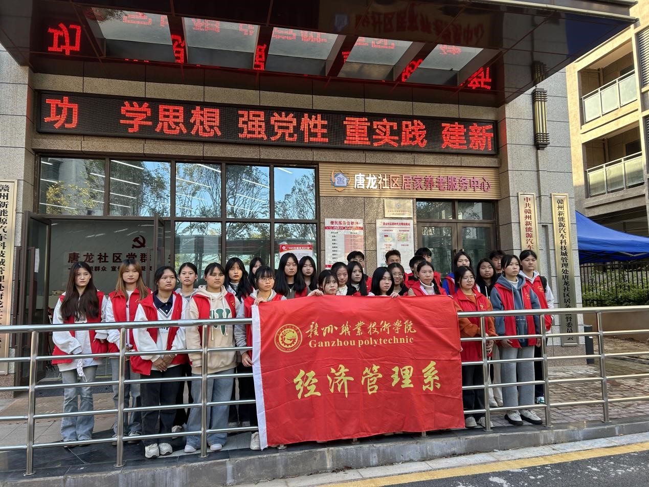 经济管理系团总支积极开展大学生青年进社区实践活动——“社区青春行动”。12月7日,学院团委委员、经济管理系专职辅导员肖蔚组织30余名学生志愿者前往唐龙社区党群服务中心开展进社区志愿服务活动。唐龙社区党群服务中心书记谭璐婷、新时代文明实践员陈小燕先后主持开展了学习贯彻习近平总书记考察江西重要讲话精神宣讲会和中华优秀传统文化学习会。会后,社区干部与学生志愿者一同在唐龙社区环境卫生志愿活动。