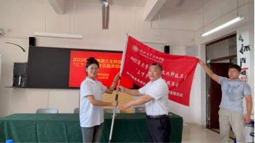 仪式最后,曾海鹏为“三下乡”社会实践团队授旗。