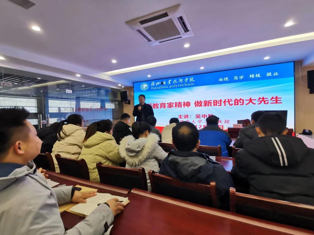 为提升师德师风教育学习成效,加强新形势下的师德师风建设,12月18日下午,动物科学系举办了师德模范专题宣讲活动,邀请全国优秀教师、赣南师范大学二级教授吴中胜博士做师德师风专题宣讲报告。活动由动物科学系主任吴辉生主持,动物科学系与现代农林工程系全体教职工参加此次活动。