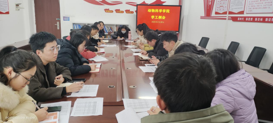 2月28日上午,动物科学学院在应星楼四楼415室召开新学期第一次学工例会,会议由动物科学学院党支部副书记刘燕娜主持召开,动物科学学院全体专、兼职辅导员班主任、学工干事、组织员参加会议。