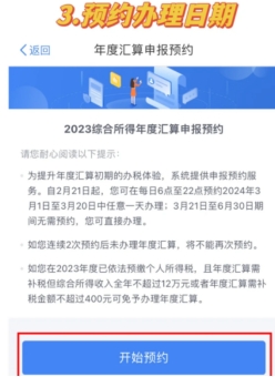 2023年度个税汇算预约办税功能已上线。纳税人如需在3月1日至20日之间办理汇算,可在2月16日至3月20日每天的早6点至晚22点登录手机个人所得税APP进行预约。3月21日以后,无需预约即可登录手机个人所得税APP直接办理。