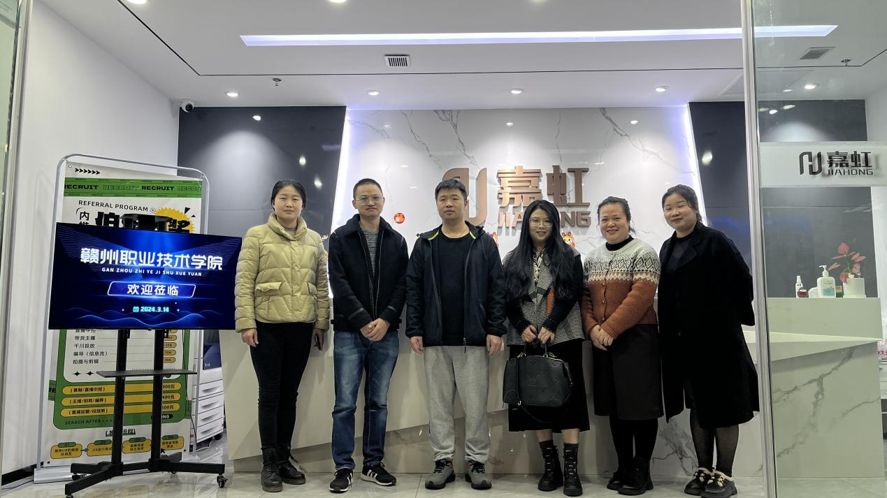 在赣州芊毅文化传媒有限公司,负责人介绍了公司的现代学徒制实践教学模式,通过这种培养模式,使学生掌握的技能更加符合企业的实际需求,学生毕业即能就业,工作就能顶岗,既利于学生也有利于企业的发展。在赣州嘉虹信息科技有限公司,经济管理学院教师一行考察了直播营销基地、数智运营培训中心,认真听取了企业负责人介绍当前校企合作的现状,共同探讨校外导师教学、企业项目入校等情况。