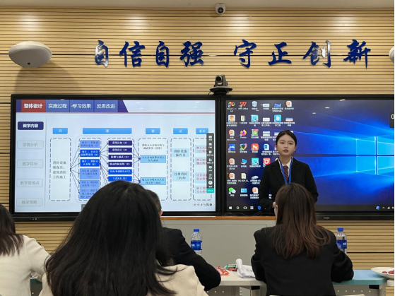 参赛团队成员曹冠洋老师负责讲解了教学实施报告,在为期3个月的准备过程中获益匪浅,她说:“参加本次教学能力比赛,对于自己来说是一次全新的挑战,也是一次宝贵的成长机会。在这个过程中,我不仅提升了自己的教学设计能力,还对教育教学有了更深层次的理解和认识。明白了作为一名教师,我不仅要认真教书,更要潜心育人,要在传授知识的同时,关注学生的全面发展。这次经历将成为我教育生涯中的一笔宝贵财富,激励我不断学习,不断进步,为培养更多优秀的学生而努力奋斗。”